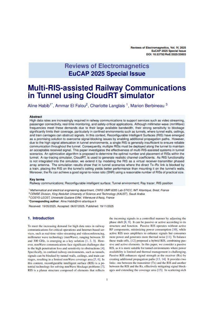 Consequently, multiple RISs must be deployed along the tunnel to maintain an acceptable received signal. This