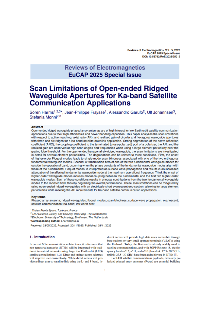 Open-ended ridged waveguide phased array antennas are of high interest for low Earth orbit satellite